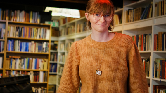 Häng med mig till en plats där jag både kan ägna mig åt ett intresse som jag brinner för, nämligen böcker, och där jag kan vara helt mig själv – ett antikvariat mitt i stan. Böcker och musikkväll varje torsdag. Vernissage och pågående konstutställningar. Hit till antikvariatet är alla alltid välkomna, vem du än är. Ett mellanrum att andas i och en flykt från vardagen.