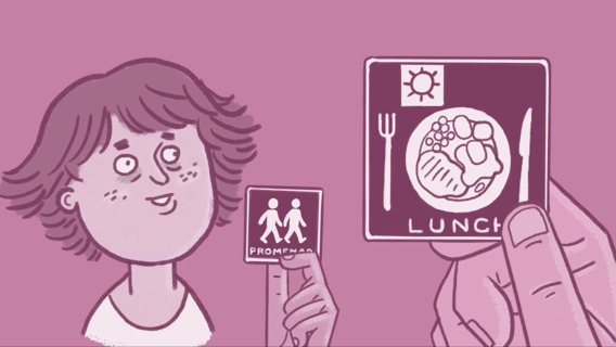 I foldern Bildstöd i sjukvården får du följa Stina i förberedelserna för en axeloperation. En viktig del i var det bildstöd som hennes mamma Eva Nordin-Olson tagit fram inför operationen. En engagerad personal och ett nära samarbete mellan hennes familj och sjukvården bidrog också till att Stina kände sig trygg och operationen gick bra.