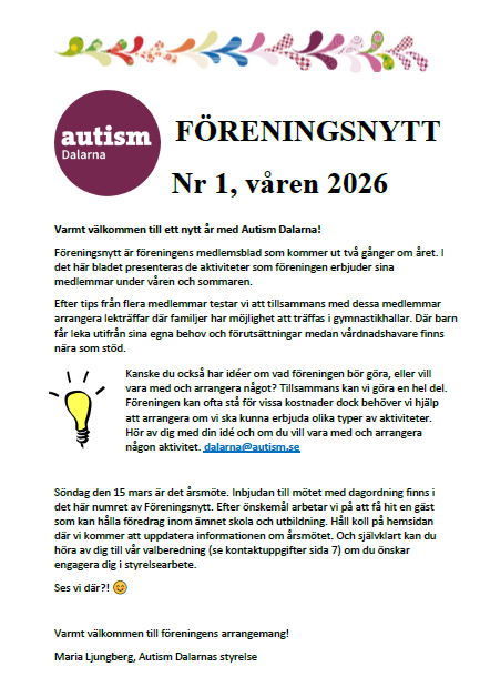 Föreningsnytt skickas till alla medlemmar två gånger per år. Där uppdateras om vad som är på gång inom, och ibland, utom distriktet.