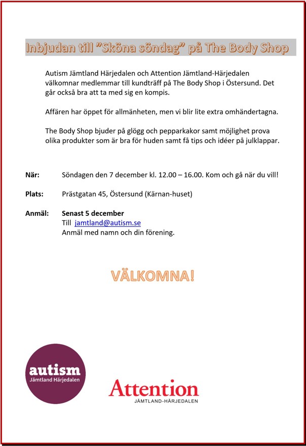 Inbjudan till ”Sköna söndag” på The Body Shop
